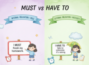 Imparare a usare correttamente must /mʌst/ e have to /hæv tu/ è fondamentale per parlare inglese in modo chiaro e naturale. Entrambi i verbi modali esprimono obblighi e necessità, ma hanno significati diversi: must indica un obbligo personale o deduzione, mentre have to indica un obbligo esterno o imposto da regole.