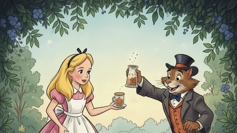 Alice, incuriosita, lo segue fino a una tana e cade in un buco profondo. Questa caduta non è solo fisica, ma simbolica: Alice sta lasciando il mondo reale per entrare in un luogo dove le regole non sono più le stesse. Da questo momento in poi, Wonderland diventa lo spazio della scoperta e dell’immaginazione.