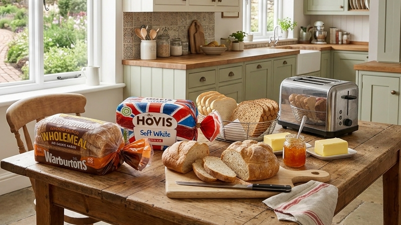In Inghilterra non c’è il “forno” tradizionale come in Italia. La maggior parte del pane viene acquistata nei supermercati, spesso già confezionata. Le varietà sono molte: bianco, integrale, multi-grano, senza glutine, in fette o pagnotte.