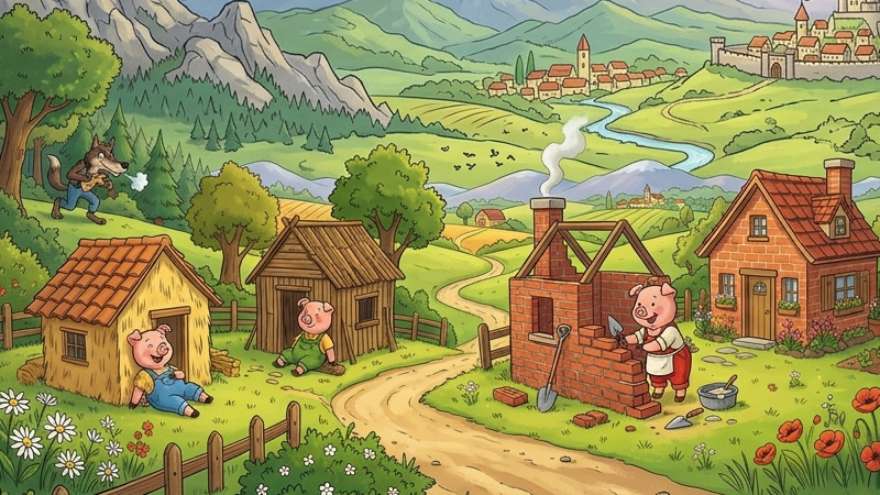 The Three Little Pigs è una delle fiabe più conosciute della tradizione inglese e rappresenta un perfetto esempio di racconto semplice ma ricco di significato. La storia dei tre porcellini e del lupo cattivo è costruita su ripetizioni, azioni chiare e dialoghi diretti, elementi ideali per chi vuole imparare l’inglese attraverso la narrazione.